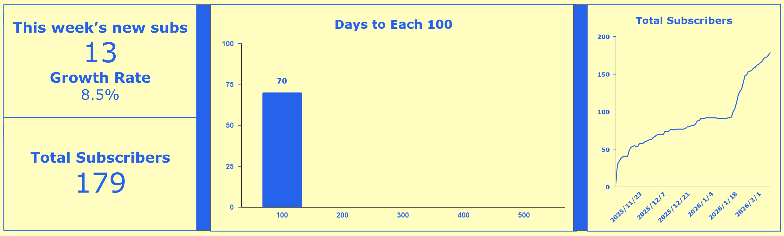 Another exciting week of growth! We grew another 8.5% week over week and are quickly approaching the next 100-sub hurdle. If you enjoyed the read and haven’t subscribed yet, the button below will get you all set up to make sure you see my posts in the future. And if you know anyone else who might like my writing, consider sharing!